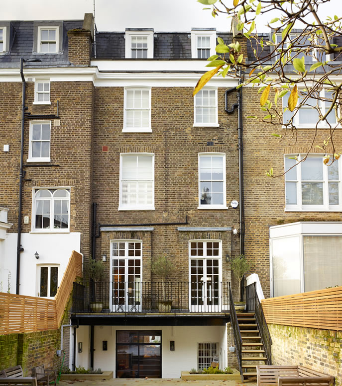 Modern fully glazed 2 storey rear extension to existing listed dwelling including new lift and stairs