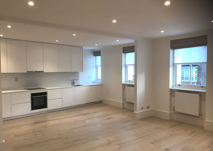 Working in a live environment with all other existing flats occupied, care had to be taken when programming works to ensure minimal disruption. Detailed programmes were produced working alongside the management team of Parkside Management. A successful project that was completed on time, under budget and the final result looks fantastic.